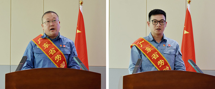會(huì)議宣讀了對(duì)榮獲“廣東省勞動(dòng)模范”的許多琦、張東波同志的表彰決定,對(duì)他們辛勤付出和工作成效予以肯定。公司領(lǐng)導(dǎo)為許多琦、張東波同志頒發(fā)獎(jiǎng)金,并為許多琦、張東波“勞模和工匠人才創(chuàng)新工作室”揭牌。